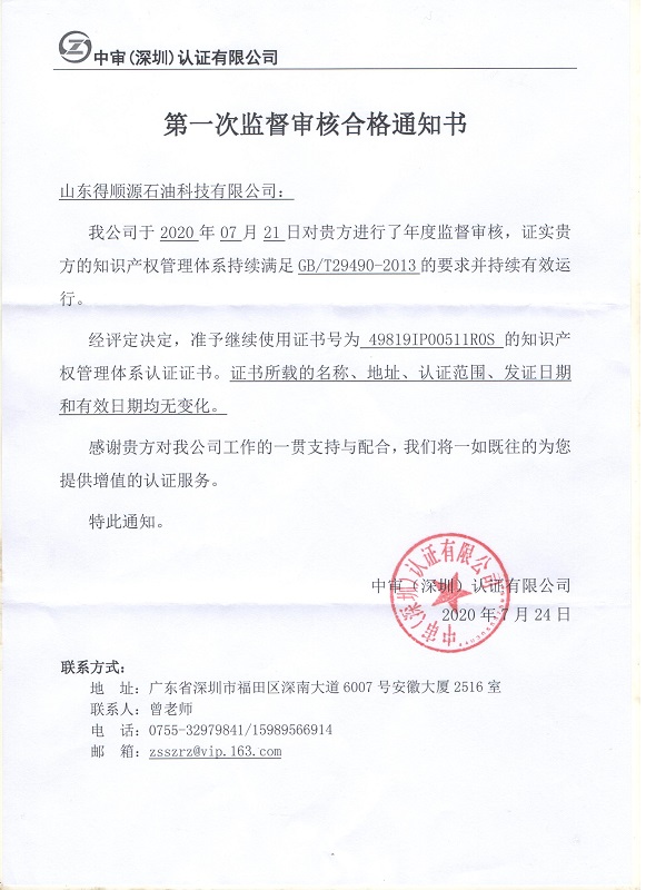 On July 30th 2020, the company has successfully passed the first supervision and audit of intellectual property management system and continued to keep intellectual property management certificate.